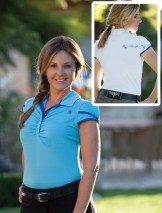 Another super cool top that caught my eye right away was the Romfh Sinead Polo. Romfh is already well known for their use of super high tech fabrics that wick moisture, breathe and keep you cool and dry. Add to that the fact that their garments are extremely flattering and have so many feminine touches and you’ve got a line that everyone will love! The Sinead in particular drew me in because of its crisscross layered cap sleeves and the adorable ruching at the chest.