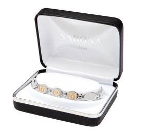 Make a subtle statement with the “Mom” Sabona Magnetic Bracelet. This lovely polished stainless steel bracelet with either Silver or Gold accent gem-studded links that spell Mom will remind her of all the moments she shares with you.